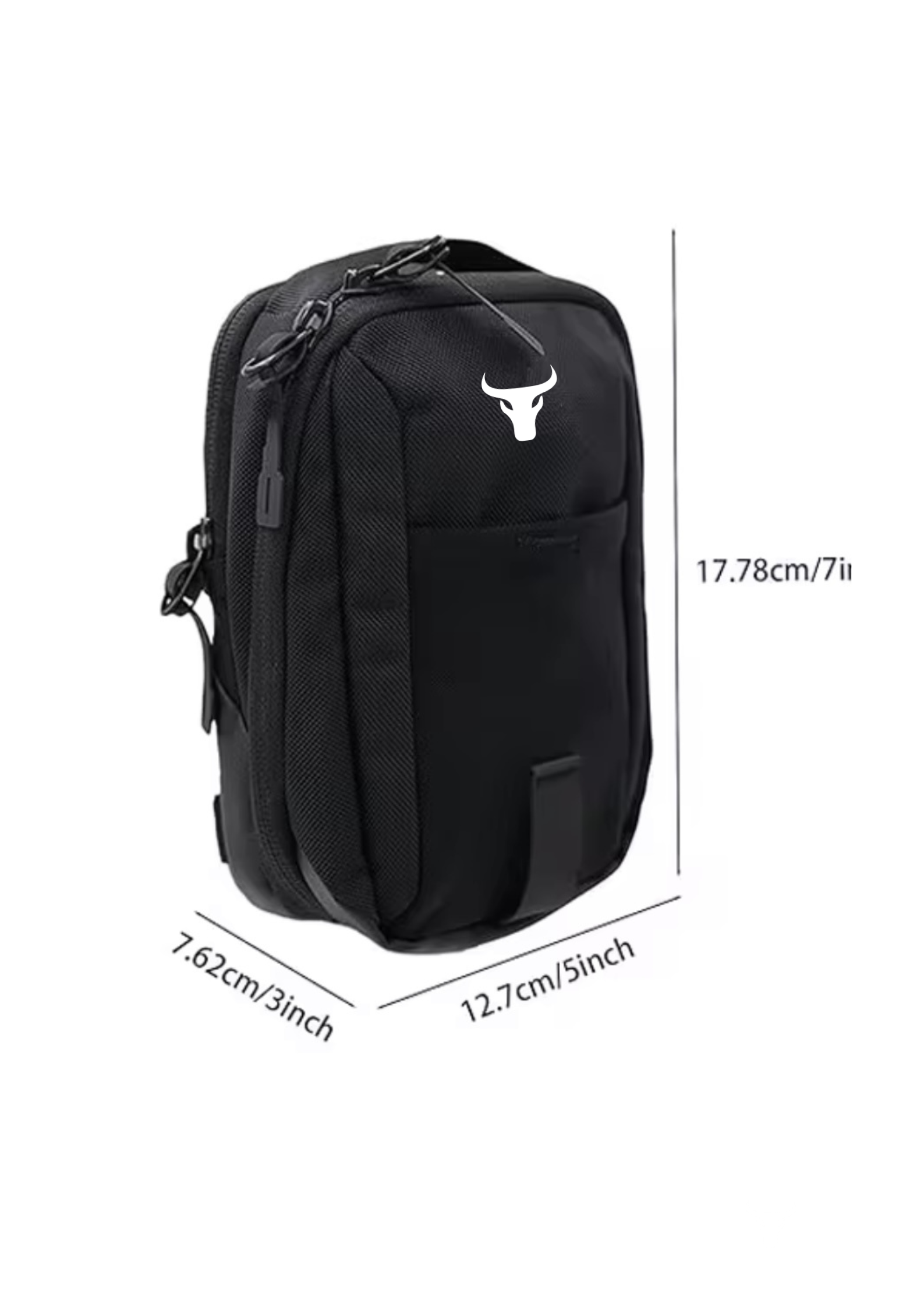 Fabricado en poliéster impermeable y térmico, es resistente, ligero y diseñado para soportar rutinas intensas, sudor, fricción y uso diario. Con múltiples compartimentos, ajuste reforzado y un diseño compacto, este bolso se convierte en un aliado indispensable para cualquier atleta.